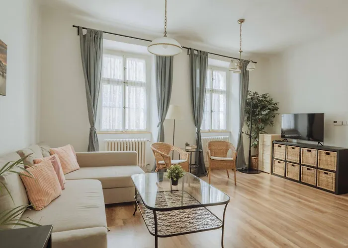 Muzeum Alfonsa Muchy jest w mniej niż 1 km, natomiast Synagoga Hiszpańska w Pradze - w malej odległości od apartamentu o powierzchni 110 m^2. Staroměstské náměstí znajduje się 500 m od tego apartamentu.